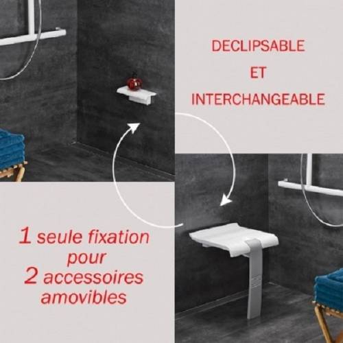 Parfaitement adapté pour les particuliers comme pour l'hôtellerie. Un produit novateur et unique : siège déclipsable de son support mural et interchangeable avec la tablette de douche Arsis réf. 047735 (847067). Assise ergonomique grande taille au design épuré pour un maximum de confort. Le concept idéal pour transformer sa douche et la rendre accessible en toute sécurité. Fixations invisibles. Le design de ce produit est coordonné aux produits Confort Arsis.