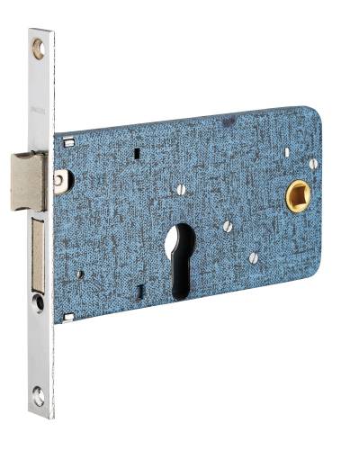 Pour porte d'entrée à encastrer. Coffre acier zingué plastifié. Demi-tour laiton réversible. Carré 8mm laiton, entraxe 67mm. Livrée sans gâche.