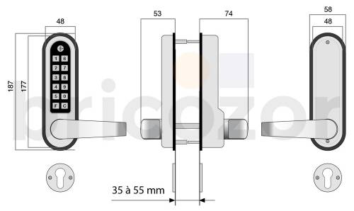 Conçu pour une utilisation sur des portes ayant une fréquence d’utilisation modérée : chambres, salles de réunion, bureaux individuels… et nécessitant un changement de code fréquent. Contrôle d’accès intégralement mécanique. Codage rapide. Remplace la garniture principale de la porte. Permet de conserver serrure monopoint, cylindre et clés existants. Code modifiable à volonté par le clavier sans dépose avec libre passage de série. Utilisation intérieure et extérieure.