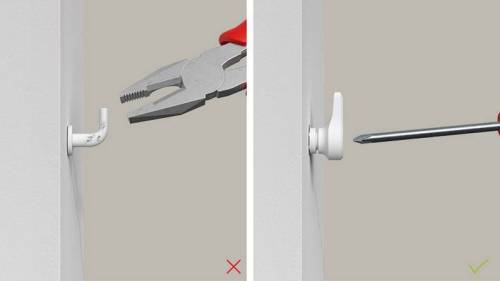 Le crochet est combiné à la vis et installé rapidement et en toute sécurité avec une cheville DuoBlade. Renforcé de fibres de verre, le crochet droit assure un niveau de charge élevé et un maintien sûr. Grâce au point de rupture prédéterminé, le crochet peut être positionné de manière optimale et installé à différentes distances du mur. Si nécessaire, les crochets EasyHook peuvent être démontés rapidement et facilement à l'aide d'une visseuse.
