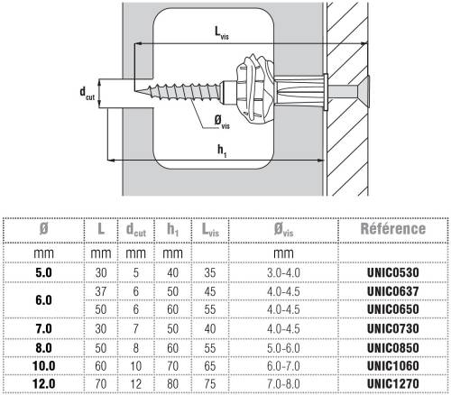 Cheville polypropylène HD. Excellent verrouillage de forme grâce à la déformation de la cheville. Fonctionne dans tous types de matériaux (béton, maçonnerie pleine et creuse, plâtre et parpaing creux). Utilisable de -10°C à +60°C.