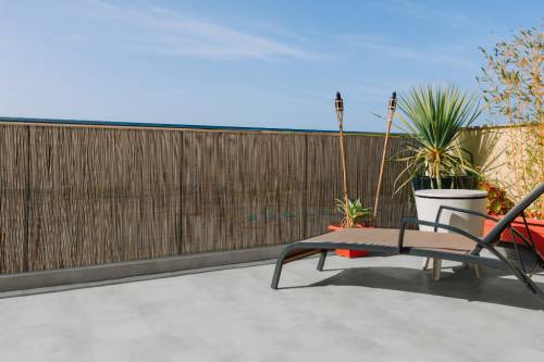 Osier synthétique très léger lié par fils en acier galvanisé. Aspect très naturel. Aucun entretien, traité anti-UV.
