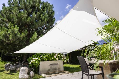 Toile polyester enduit idéale pour ombrager le jardin, la terrasse, le balcon, la piscine ou bien encore le bac à sable de vos enfants. Résistante aux UV, au vent et à l'eau cependant il est conseillé de la retirer en cas de très forte pluie, de tempête ou d'orage. Œillets métalliques pour le fixation. Ourlet périphérique renforcé. Coupe concave pour une tension sans plis. Protection contre les UV 50+. Laver à 30°C ou moins. Ne pas javelliser. Ne pas sécher en machine. Ne pas nettoyer à sec. Peut être repasser. Tissu 180g/m². Respecter une pente de 15° (environ 15cm par mètre) pour l'évacuation des eaux de pluie.